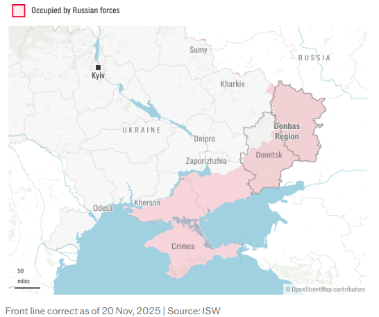 Rusko nevrátí ani zrnko nelegálně anektované půdy. Ani neposune své hranice k existujícím frontovým liniím. Ne, ve skutečnosti mu bude přiznáno území, které v současné době drží Ukrajina, čímž formálně rozšíří svou vládu nad celým Doněckou a Luhanskou oblastí a získá asi 250 000 nových poddaných.